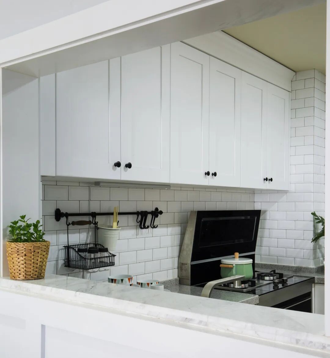 想让厨房台面看上去清爽整洁,要学会“藏”东西。利用橱柜收纳,可以有效提高整体美观度。