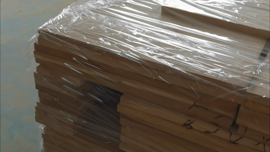 给干燥养生后的实木地板坯料“敷膜”,是为了隔绝坯料与外界环境的水分交换,确保坯料即拆即用。