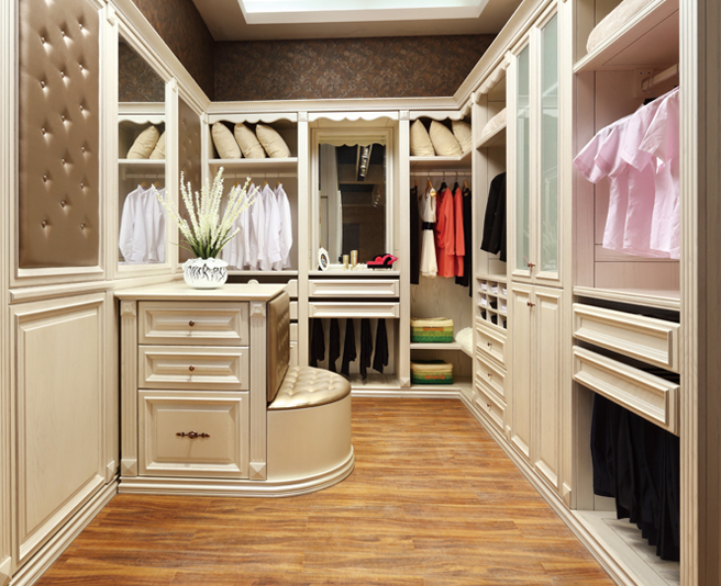 欧琳简欧风格的衣帽间给年轻的白领带来如沐春风的感觉,主材采用实木贴北美橡木皮做半封闭哑光烤漆,罗马柱及顶线配置优雅流畅,加上配套欧式板及温馨的墙面软包、弧形人性化坐靠岛台,新颖独特。