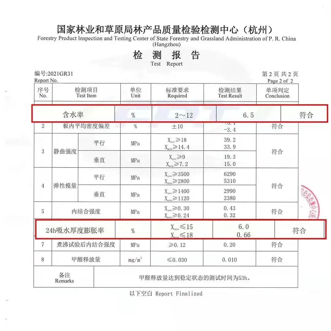 工程板材的黑马产品——OSB3建筑专用板,采用进口松木为主材料,将刨片纵横交错排列,通过大尺寸刨片的应用,再经过耐潮工艺处理,使得板材吸水膨胀率小,即使水煮一定时间仍能保持优异的内结合强度,稳定性更优。同时MDI胶遇水分层,加之千年舟独有的创新防潮新技术,整体板材防潮性能优异,更能很好的在潮湿环境下应用。