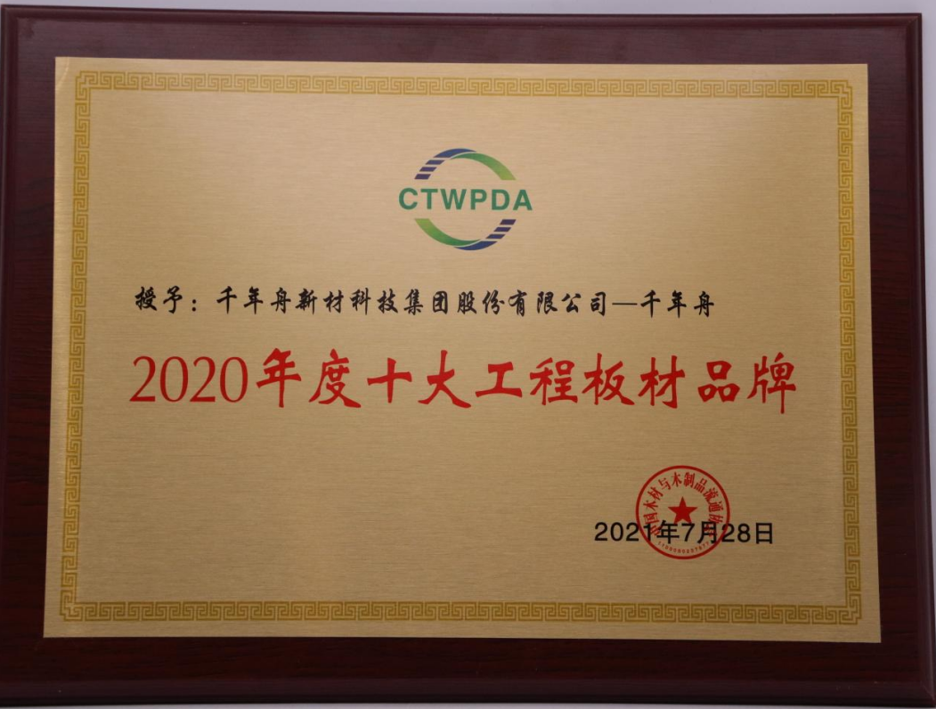 千年舟集团以自身实力,不断提升产品质量,并加大科技投入,积极拓展工装渠道市场局面,为更多的城市建筑提供优质板材。2021年,其凭借过硬的产品质量和品牌美誉度,荣膺“2021浙江总工之家推荐品牌”、“2020年度十大工程板材品牌”,第八届CBDA建筑装饰行业绿色发展大会绿色建筑装饰品牌“2020年度最佳合作供应商品牌”,为工程渠道的开拓赋予极大的竞争力。